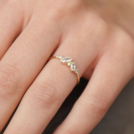 14k gold ring combined with round, emerald, and marquise shaped white zircons manufactured in Europe by Velentia model V872